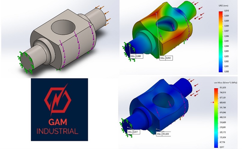 Análisis de elementos finitos (FEA), evaluación de esfuerzos, deformaciones y fatiga en piezas y estructuras.